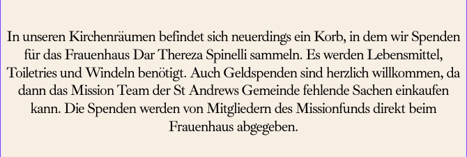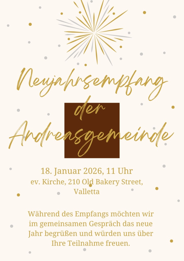 Wichtig: Die Festnetznummer der Andreasgemeinde ist nicht mehr aktuell. Sie können das Pfarramt nur noch über die Mobil Nr. 00356-99 29 21 63 erreichen oder per mail: andreasgemeinde.malta@gmail.com